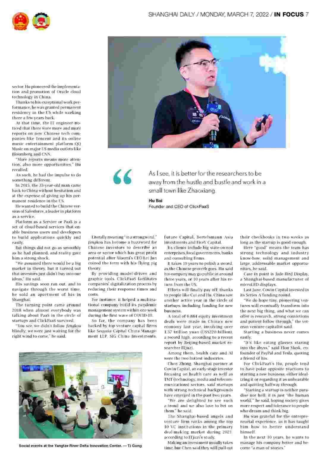 《上海日报》专访CGPAY钱包创始人、、、、CEO胡柏,,,探究其创业背后的故事!!!!