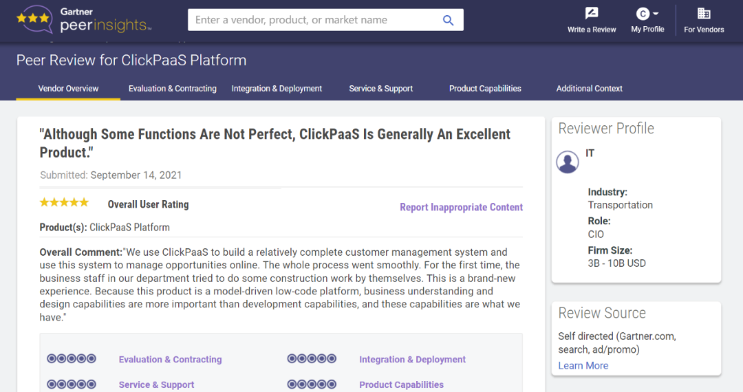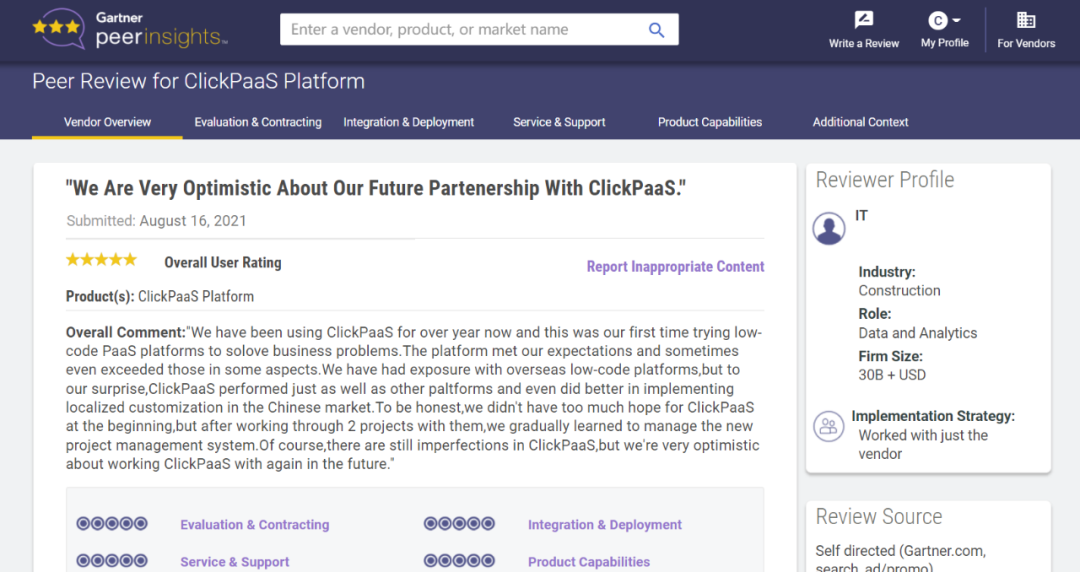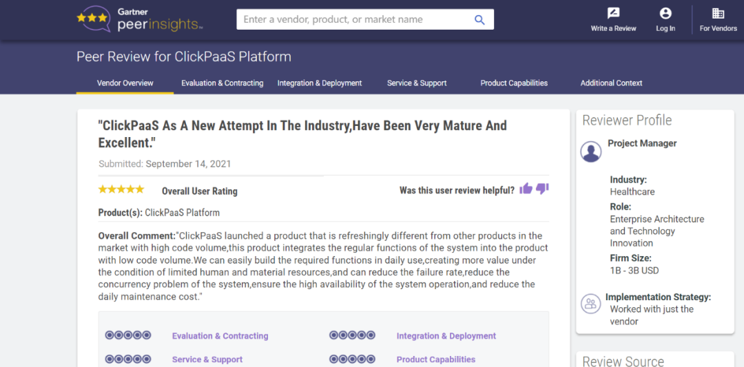 Tips::【Peer Insights】——用户对企业IT产品和服务发布真实评价的平台。。。。目前已有355个市场,,,,255,000条经过验证的评价。。。。每一条评价Gartner会针对参评企业营收规模及参评人员信息做验证、、、、评价内容做多维核实。。。。